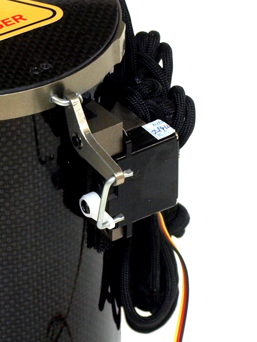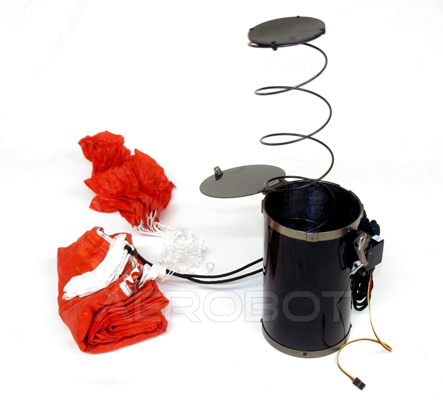 Das Auslösen des Fallschirms erfolgt durch einen Servomotor und kann mit einem PWM Signal direkt über die Fernsteuerung oder über einen freien Ausgang des Flugkontrollers programmiert werden.