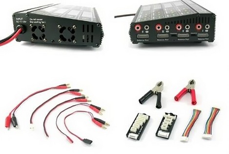 Microprozessor gesteuertes Ladegerät mit 4 separaten Ausgängen zu 60 Watt Ladeleistung und 2-6S Balancer