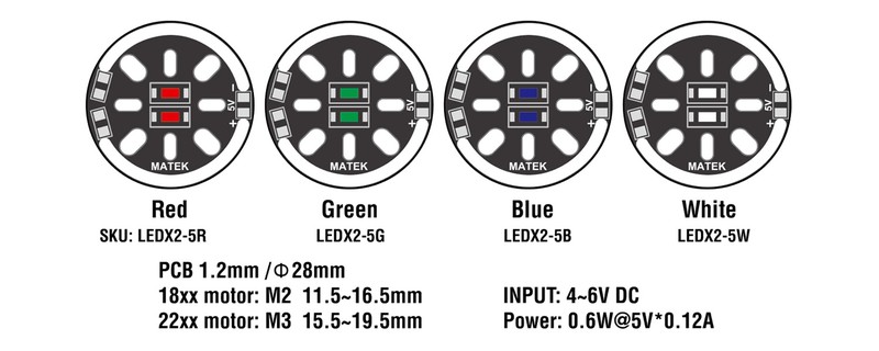 Matek LED Kreis X2/5V auf Motorträger montierbar (1806/2204 Motoren), Farbe weiss