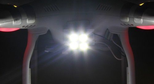 Ultra helle Landescheinwerfer (4xLED) mit Spannungsmodul für DJI Phantom 3 oder alle 4S Stromquellen mit 14,8V.Lieferumfang:• 1 x Platine 4-fach Scheinwerfer• 1 x Spannungsmodul