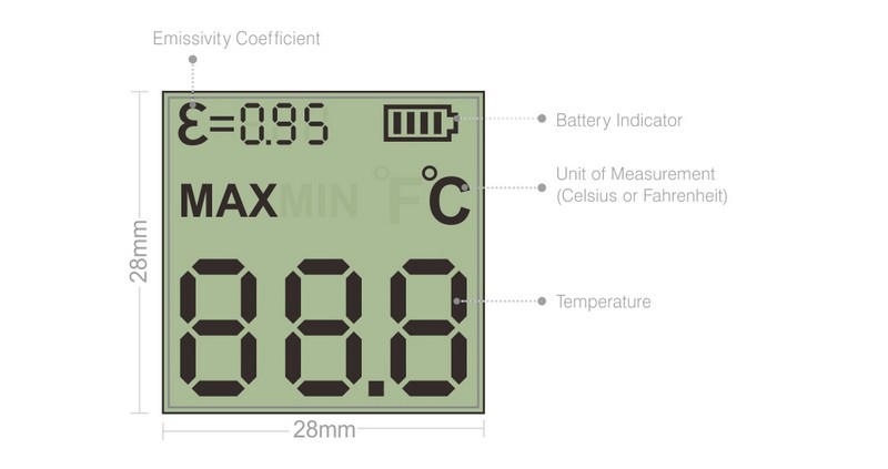 Einfach das Infrarot-Thermometer am Ziel anvisieren und den Messknopf drücken, um die Oberflächentemperatur schnell und einfach anzuzeigen !