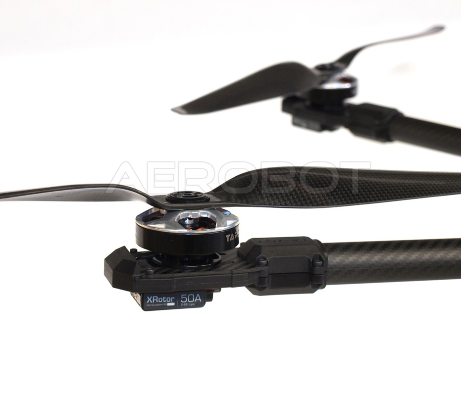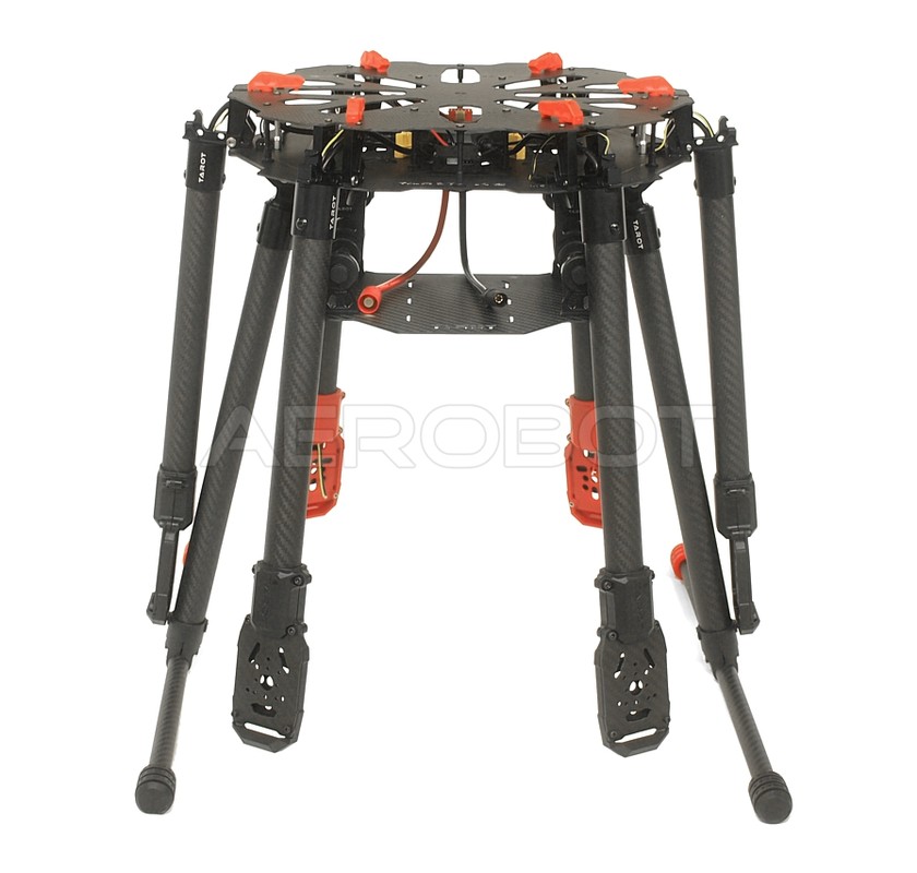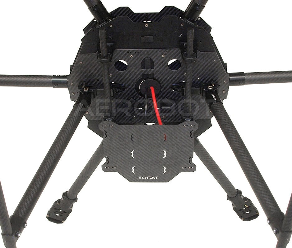 Die highend Carbon Rahmen der TAROT X-Serie wurden für den harten Altagseinsatz im professionellen Bereich konzipiert. Gleich 5 neue Patente liegen dem TAROT X6 Octocopter zugrunde und machen ihn zu einem echten Highlight unter den klappbaren Multikoptern. Wie bei allen TAROT Modellen wurde auch beim X6 auf höchste Stabilität bei minimalem Gewicht Wert gelegt. Die speziell grossen Centerplatten bieten sehr viel Platz für die elektronischen Komponenten und wobei die Anschlüsse für Strom und Signalkabel bereits integriert sind.