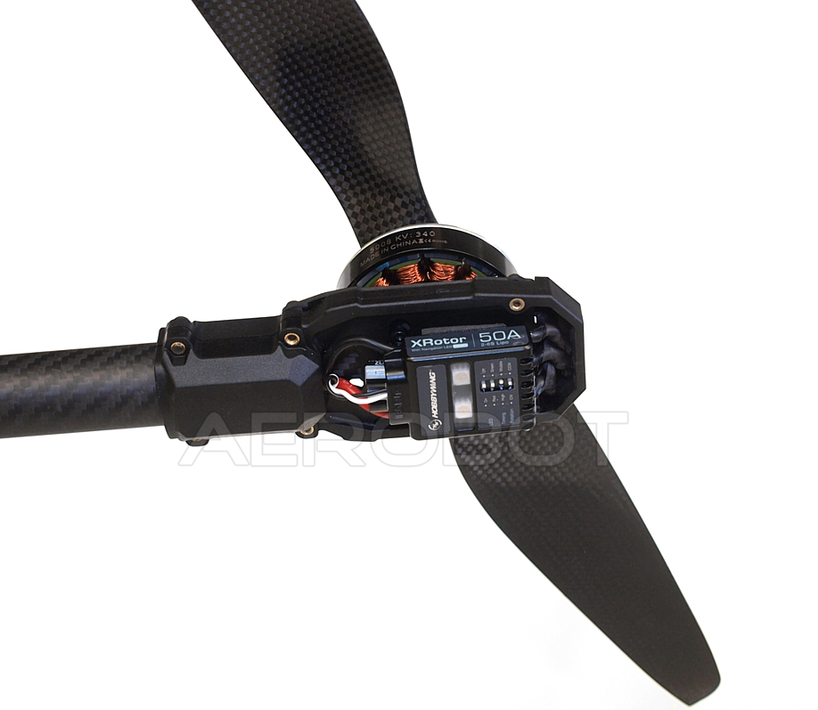 Die grossen Centerplatten ermöglichen ausserdem kürzere Ausleger was zu einer enormen Stabilitätssteigerung führt. Die dadurch gewonnene Verwindungsfestigkeit macht sich auch in der Luft durch aussergewöhnlich ruhige Flugeigenschaften und ein sensationelles ansprechverhalten auf Steuerbefehle bemerkbar. Virbrationen und Resonanzprobleme wie sie bei vielen Koptern dieser Grösse auftreten wurden durch die Auswahl des Materials und einigen konstruktionstechnischen Besonderheiten komplett eliminiert.