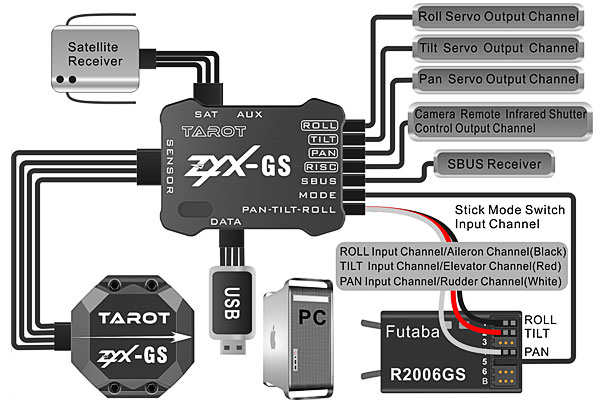 Die ZYX-GS Hochleistungssteuerung zusammen mit ultra high speed Servos der Marke SAVÖX machen die TAROT 5D Gimbal zu den schnellsten Servo Gimbal auf dem Markt.