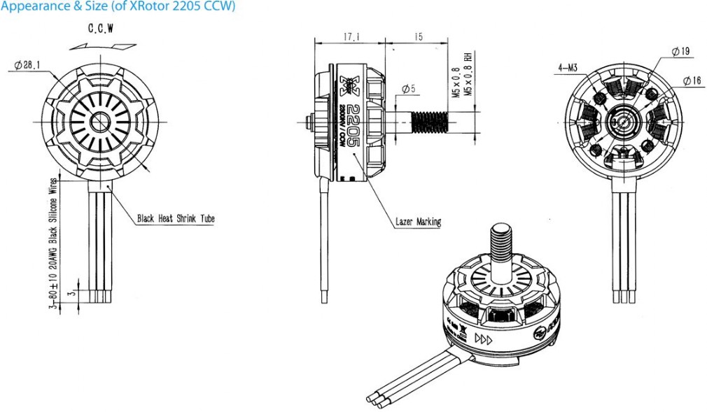 1 x Hobbywing XRotor 2205 2300 KV CCW